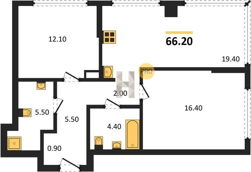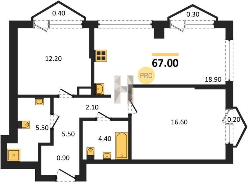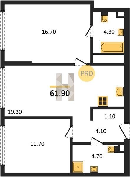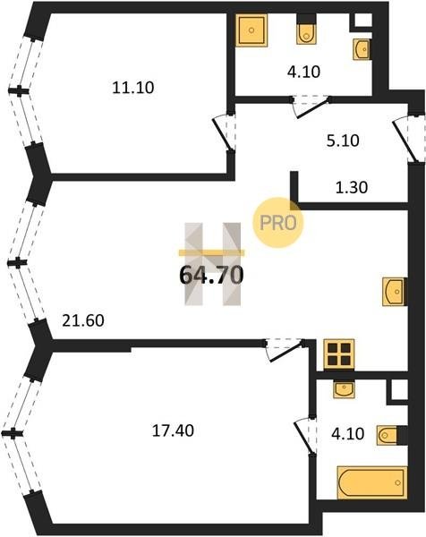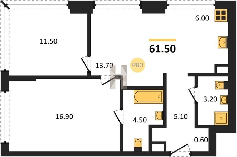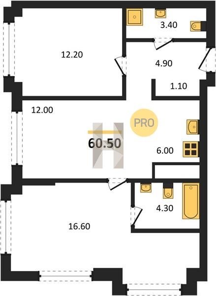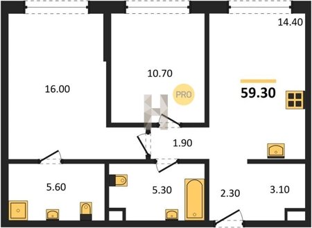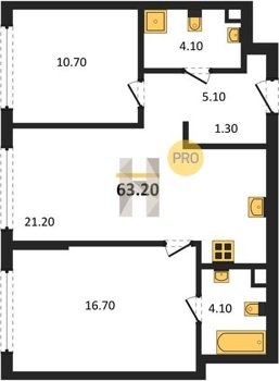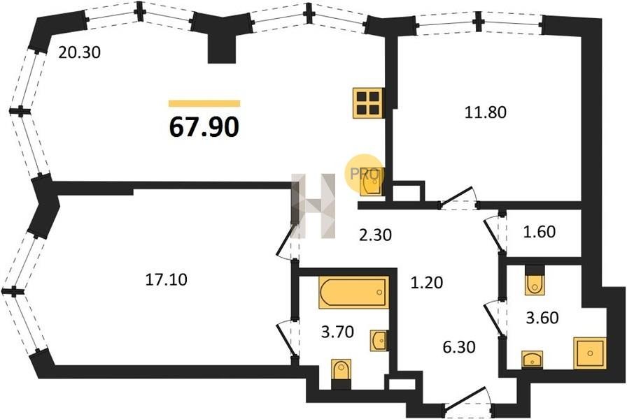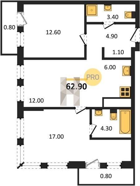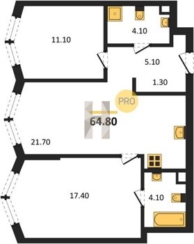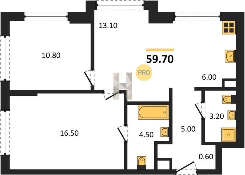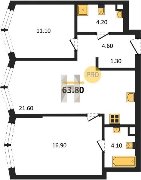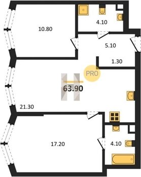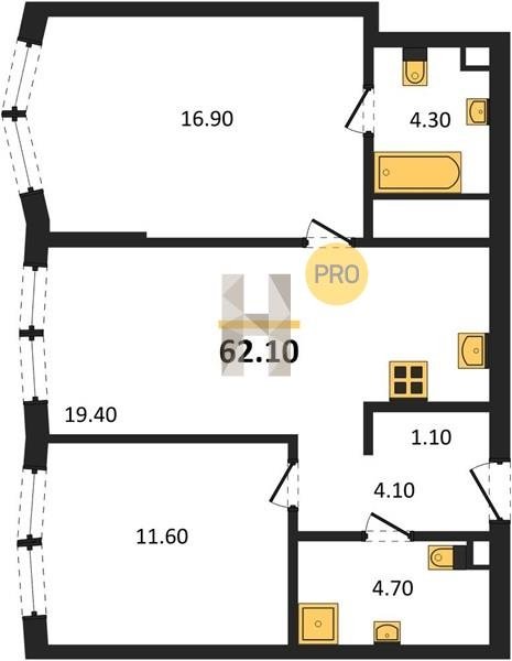 Площадь от 57.5 м2