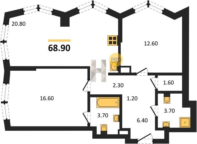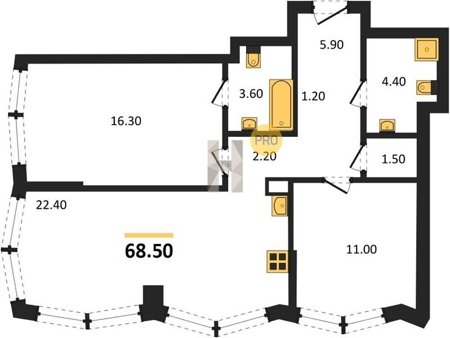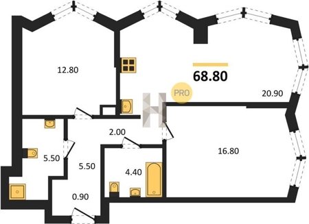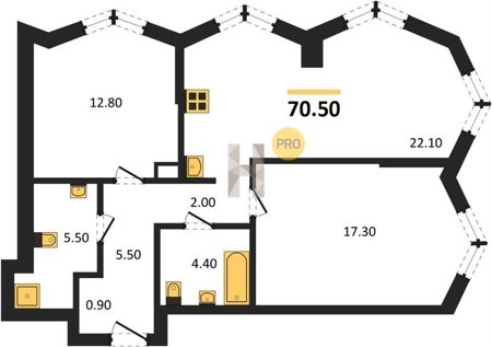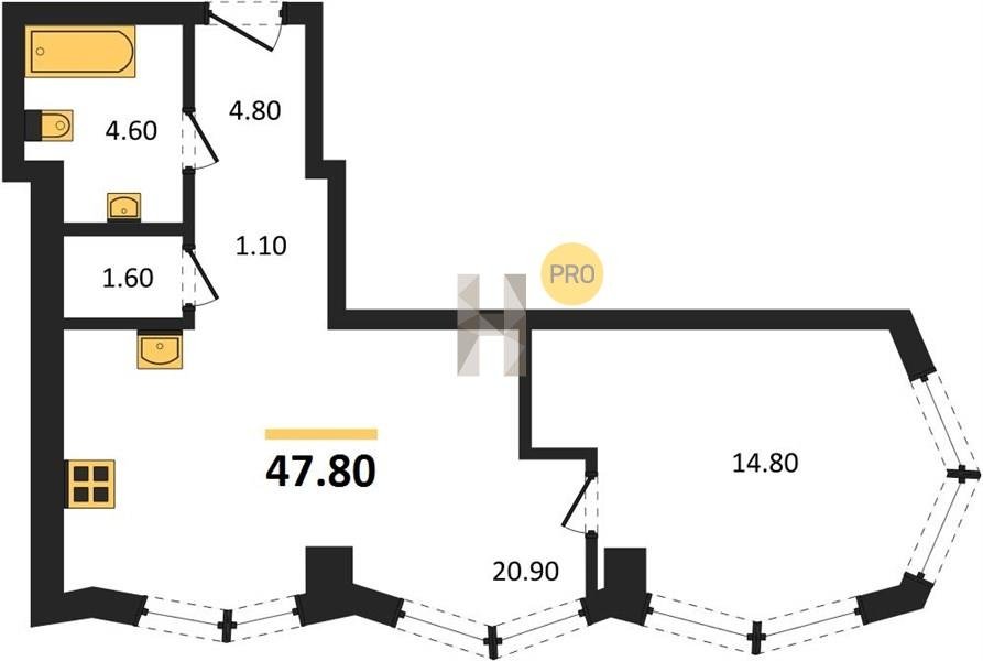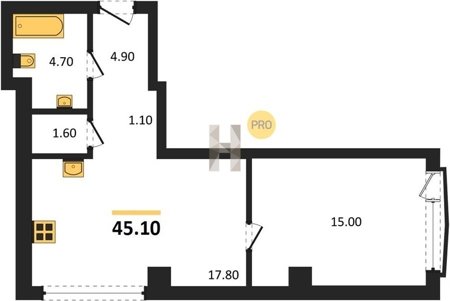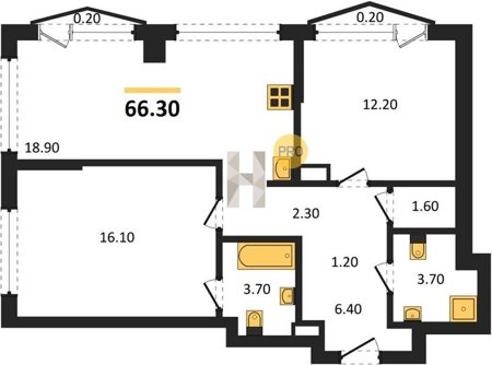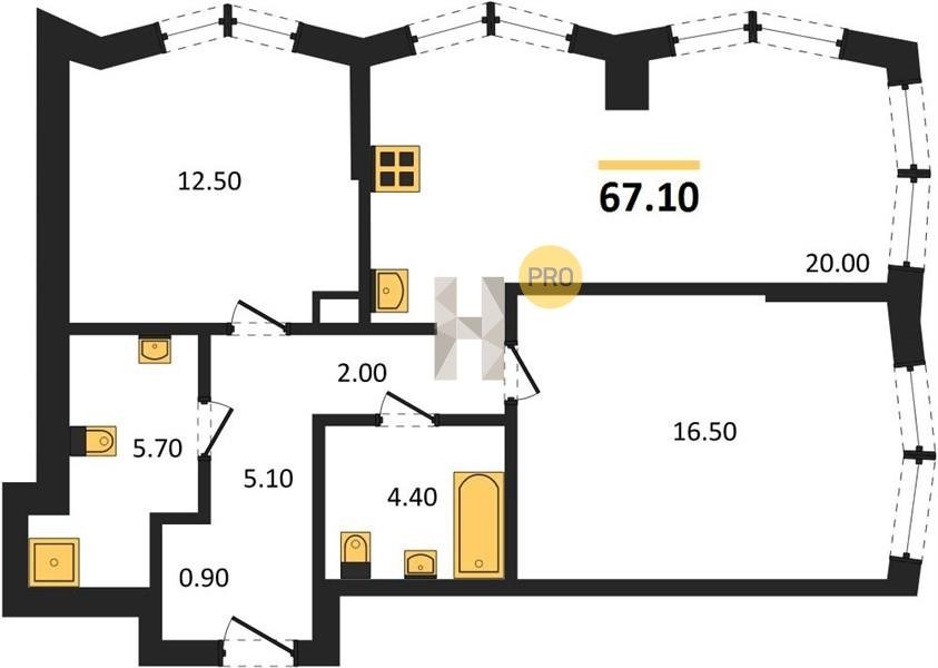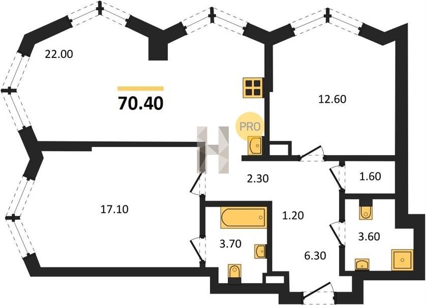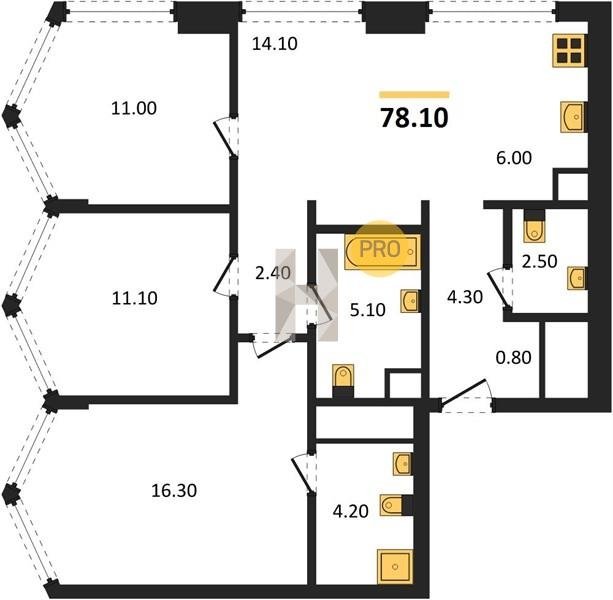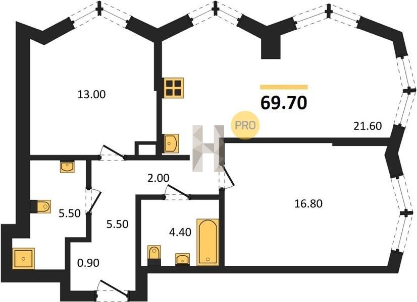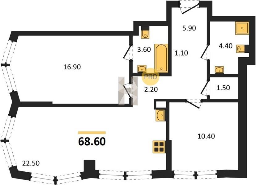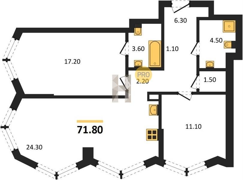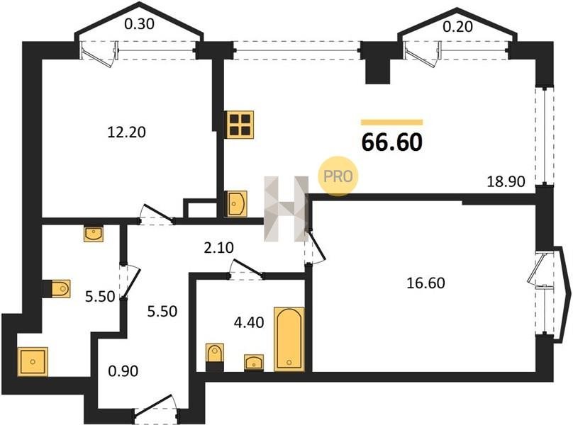 Площадь от 57.5 м2