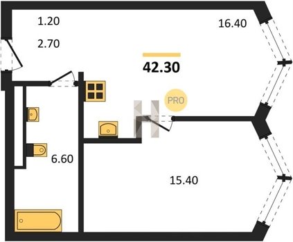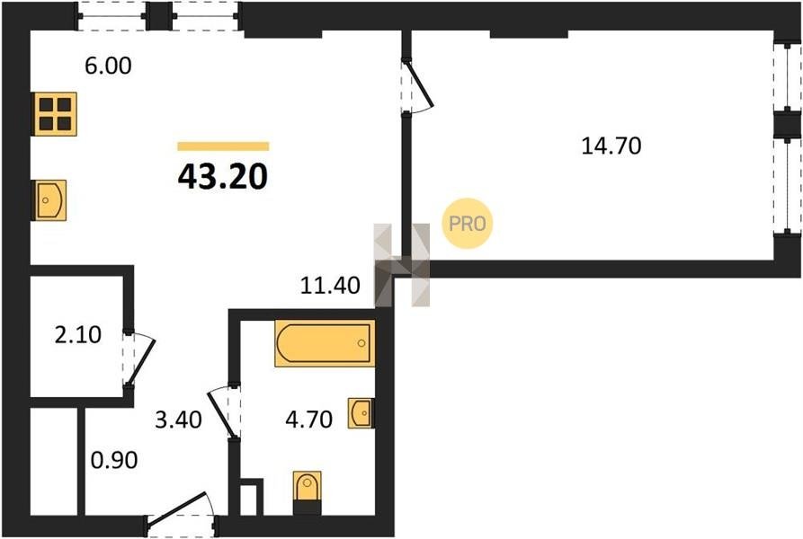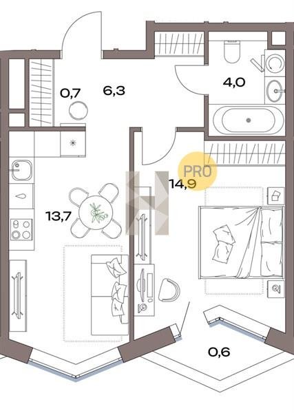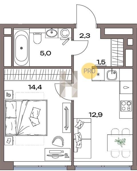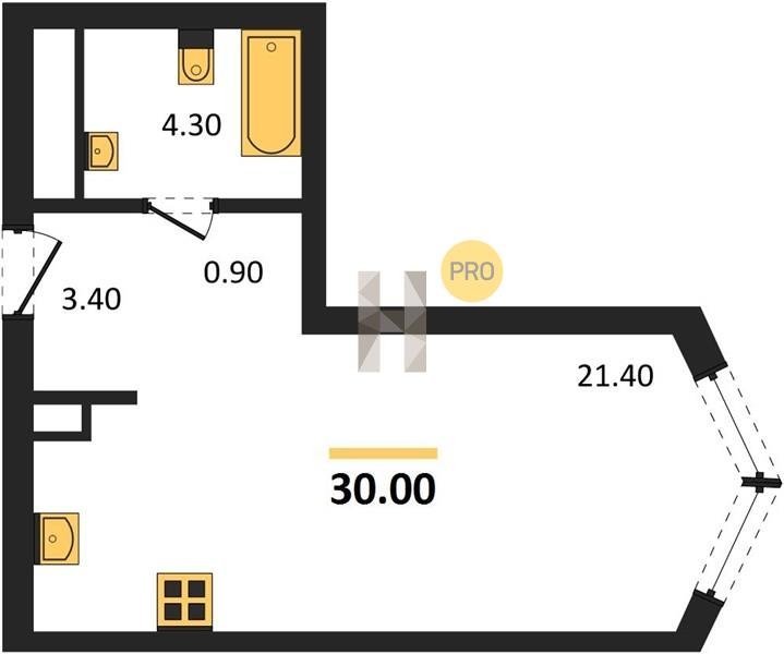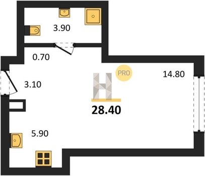 Площадь от 28.4 м2