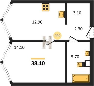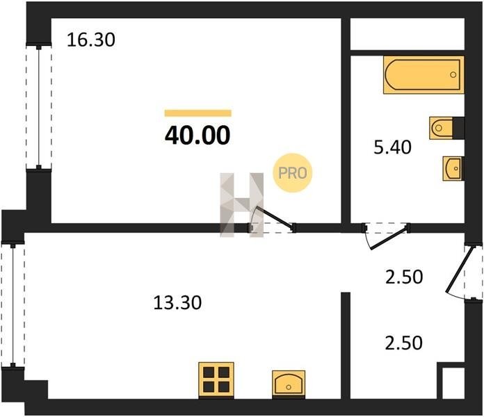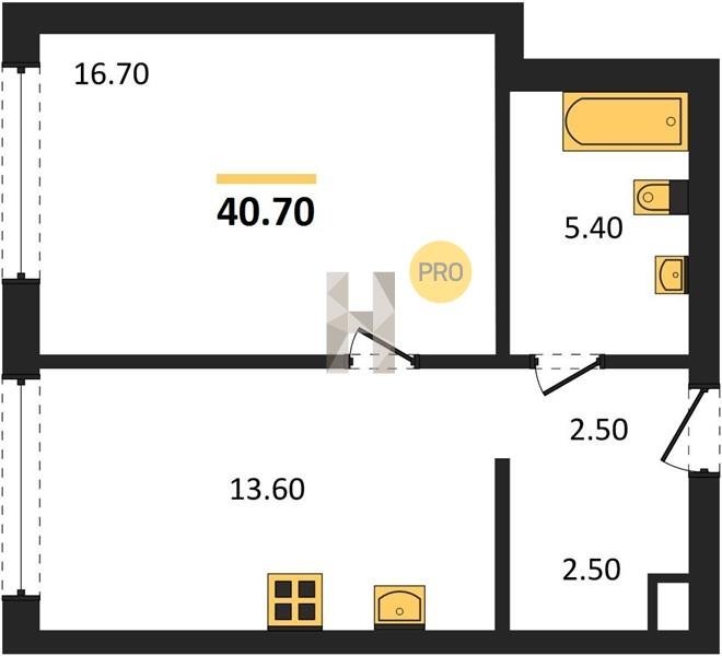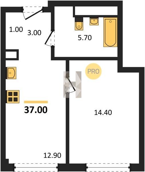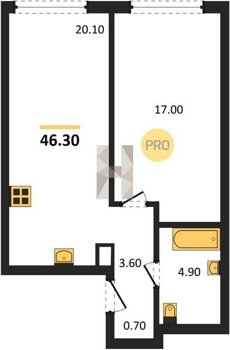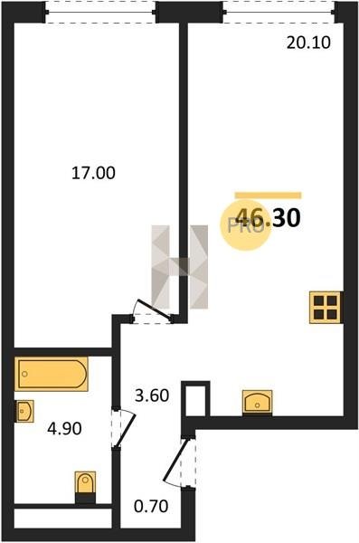 Площадь от 36.1 м2