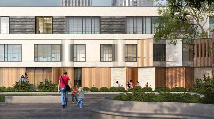 Спортивные площадки, школа, детские площадки для детей и мам, лавочки с подогревом