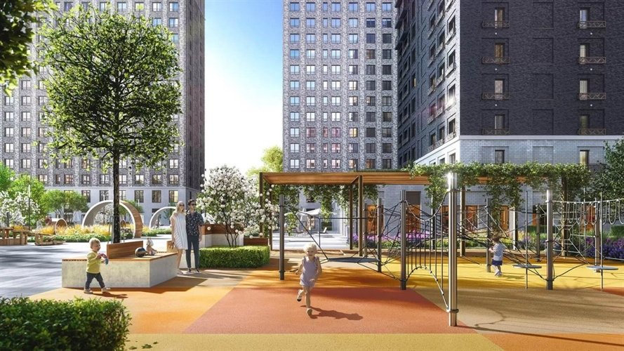 Здесь сочетаются небоскрёбы и среднеэтажные корпуса, просторный двор‑парк и полноценная инфраструктура.