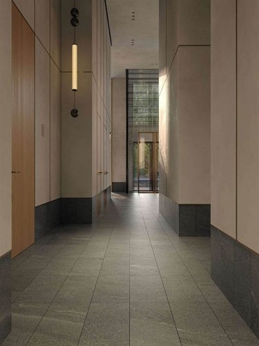 Высокие потолки, панорамные окна и нестандартные системы освещения создают в лобби красивые пропорции и интересные световые сценарии. Различные фактурные поверхности отделочных материалов и тканей привносят тепло и уют.