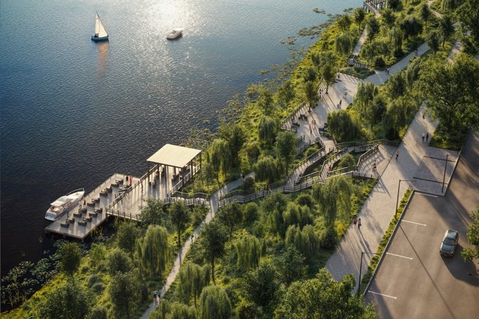 Современное видение развития экосистемы Москвы-реки включает создание непрерывной прибрежной парковой зоны и полномасштабной «зеленой» инфраструктуры