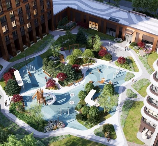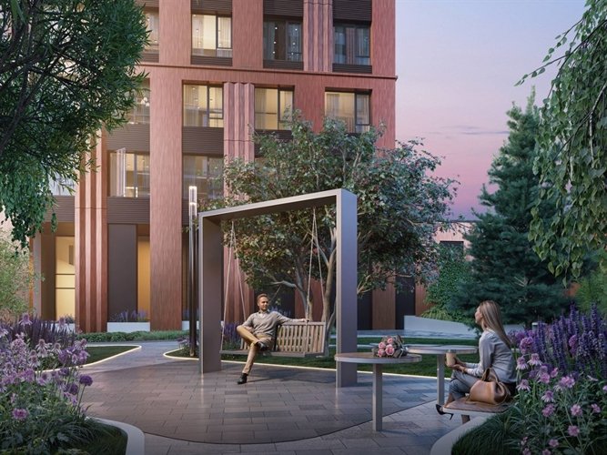 Погрузитесь в атмосферу курортного отдыха в собственном двор-парке. Двухуровневый амфитеатр встречает гостей, а зеленая роща зовет к медитации