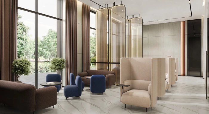 Начните свой день в уютном лобби с потолками 4м, где жизнь обретает новый смысл. Работайте в стильном коворкинге, отдыхайте с книгой, встречайте гостей.